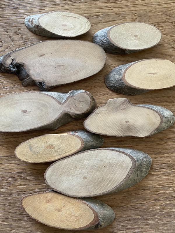9 Houten schorsjes leuk om een popje op te zetten zodat ze goed blijven staan.